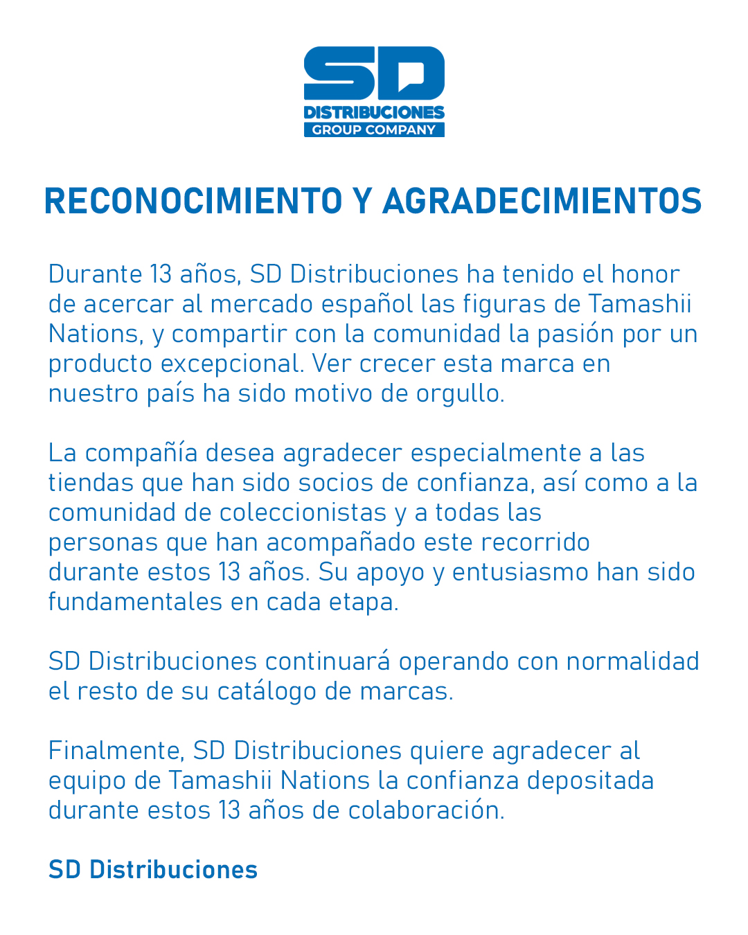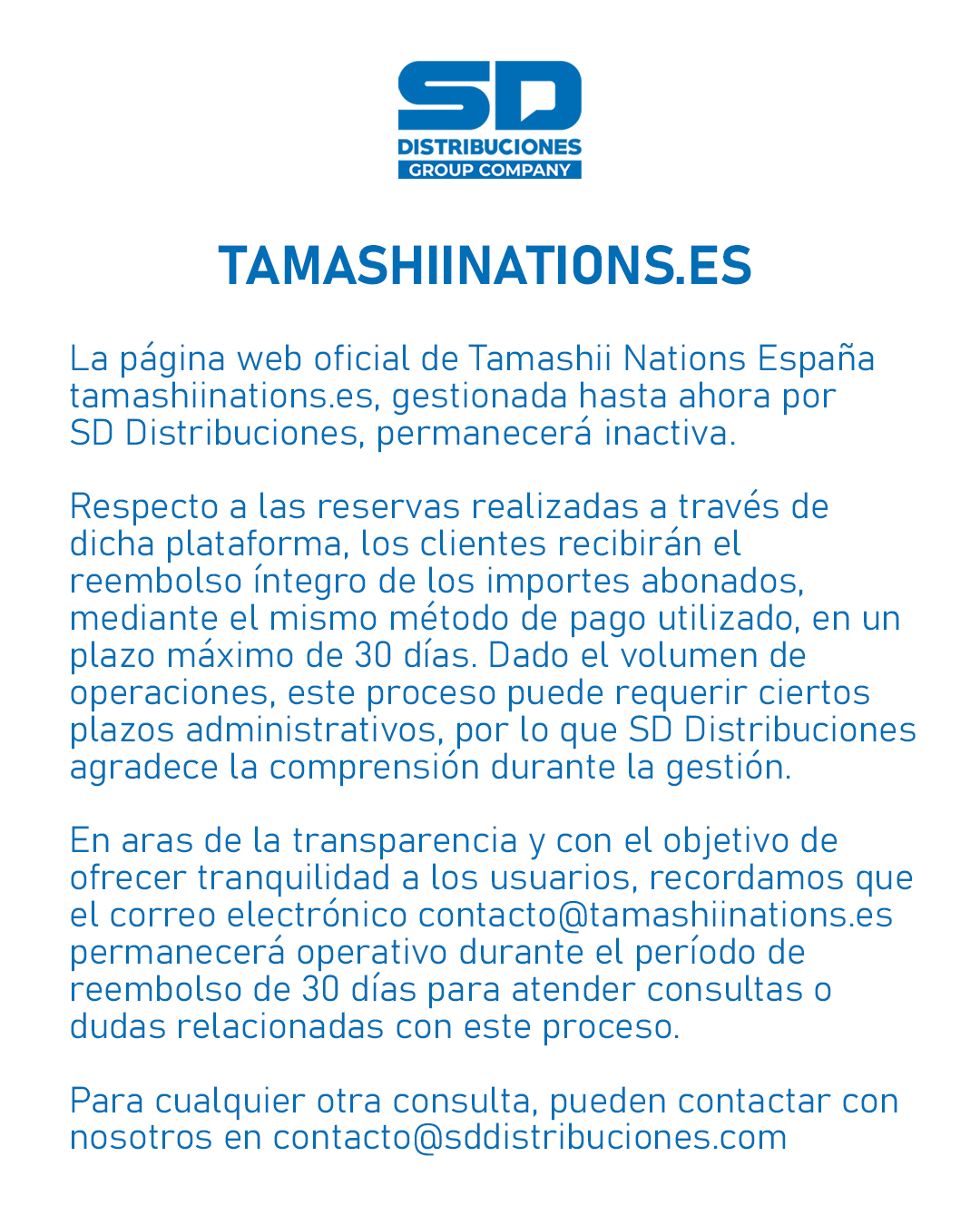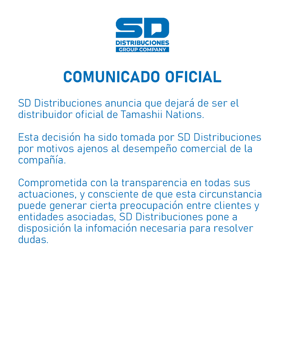 Hoy martes 14 de octubre cuando escribo esto nos llegó el comunicado de la distribuidora avisando que ya no iban a trabajar con Tamashii Japón: